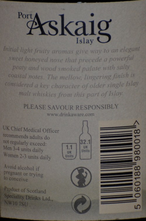 Port Askaig 17: International Dram of Mystery » Port Askaig 17 Back Label