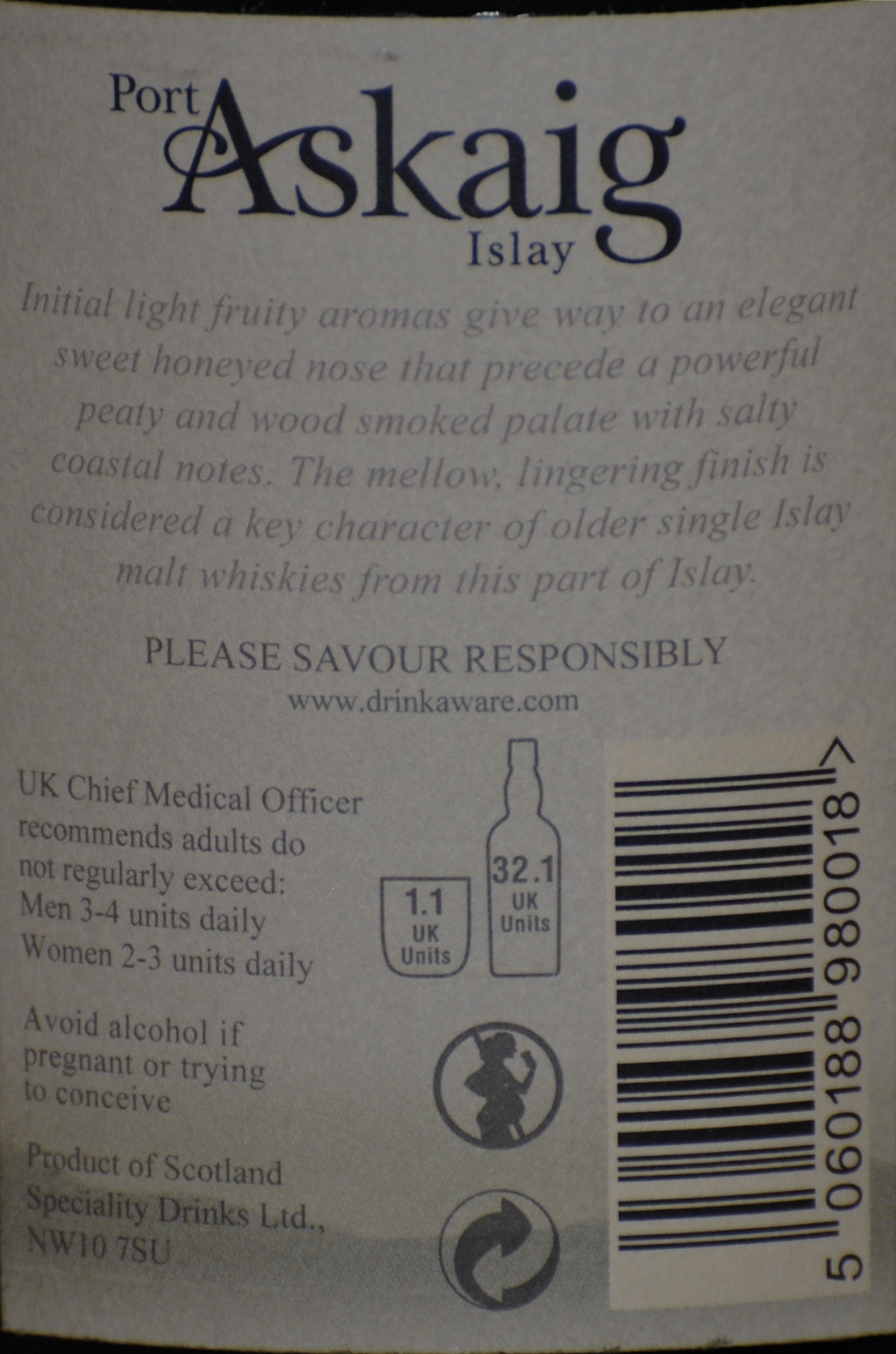 Finish: Finally, we get a more sooty smoke that reveals some distillery character rising up in the back of the nostrils. On the tongue, continued heat along with sweets and fruits. However, as the smoke and sweetness dies off, I’m left with a stale malt flavor that takes over and lingers. Hmm…not what I expected. It reminds me of the late finish on my 200ml bottle of Glenkinchie 12. Adding water to bring it down closer to 45-50% ABV seems to cut down on the stale malt component. I just discovered this at the end of my sample…wish I could try again to confirm.