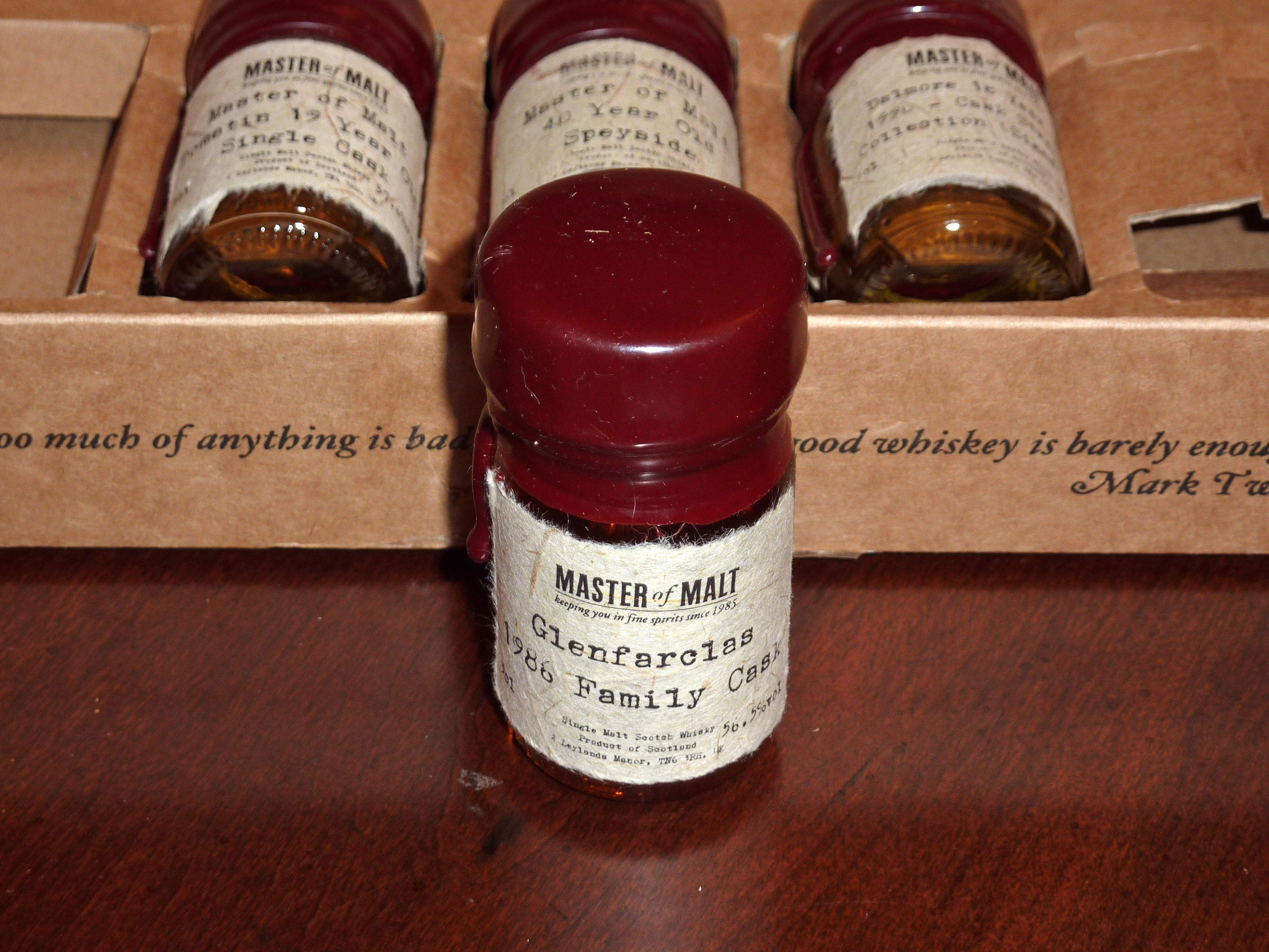 Finish: Peat and tea leaves in the back of the nostrils are accompanied by a return of sweets and fruit. Although, now, instead of oranges, it’s more like passion fruit. On the tongue, I get some more of that Dalmore chocolate with some mild drying. Interestingly, as the dryness wears off, I’m left with a salty after-taste.